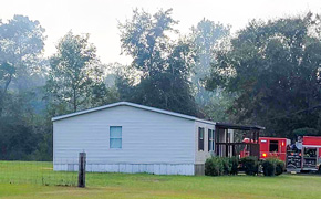 The camper was engulfed in flames when firefighters arrived in the 1800 block of Lambert Bridge Road, just off North Pine Barren Road.
