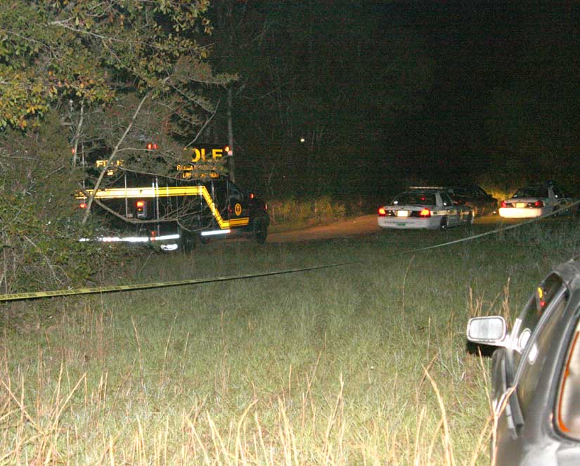 (Pictured above: Atmore Ambulance arrives on scene Saturday morning about 5:30. Below: The scene a few hours later as crime scene investigators work.)
