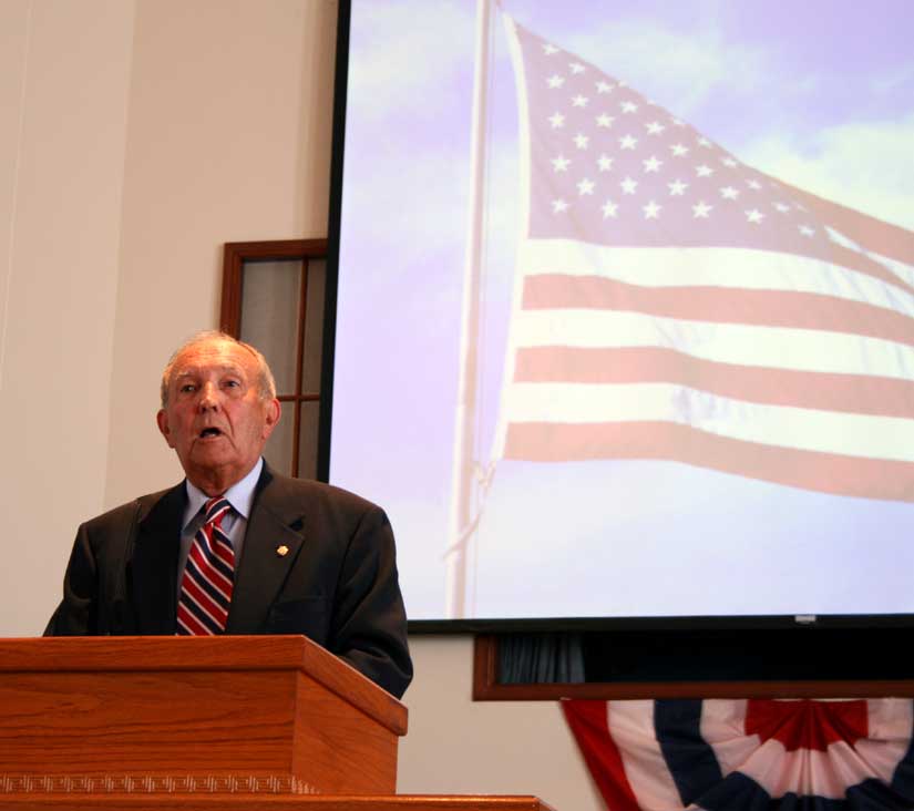 Former U.S. Congressman Earl Hutto was the guest speaker at Highland Baptist Church’s Veterans Day service Sunday morning.
