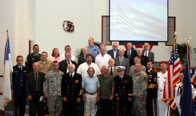 Dozens of members and guests at Highland Baptist were honored for the military service during the service, many wearing their uniforms (pictured below, click to enlarge). The Veterans Day program included special music, presentation of the flags by a military honor guard, and a Veterans Day related sermon from Pastor Brian Calhoun.