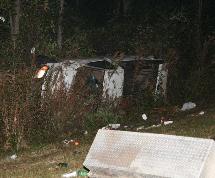 The accident occurred at 9:36 Saturday night and involved one vehicle. A white pickup was on its side in the edge of the woods just off the northbound lanes of Highway 29. There were no passengers in the vehicle, according to troopers.