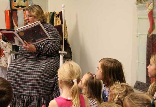 After reading the book, the children were shown a bell that did not ring. When they agreed that they truly believed in Santa, the bell rang. Then Santa appeared at the door.