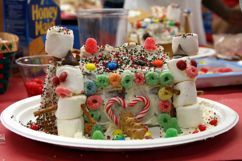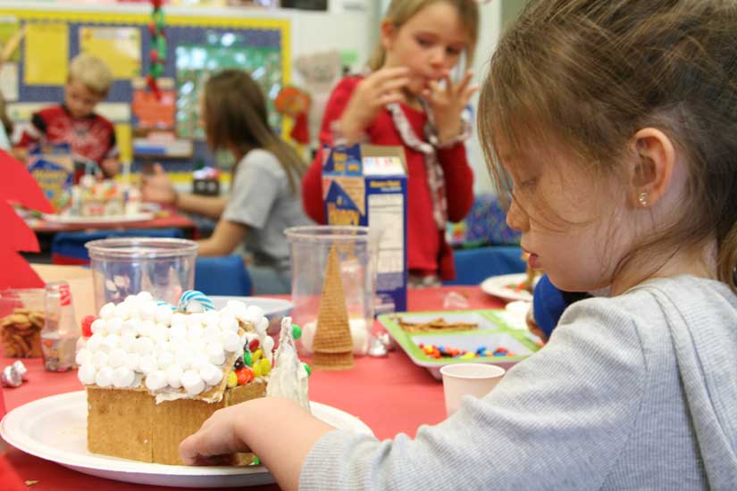Sticky fingers were everywhere as first grade students at Bratt Elementary School got into the Christmas spirit Friday afternoon by building gingerbread houses with their parents and other relatives.