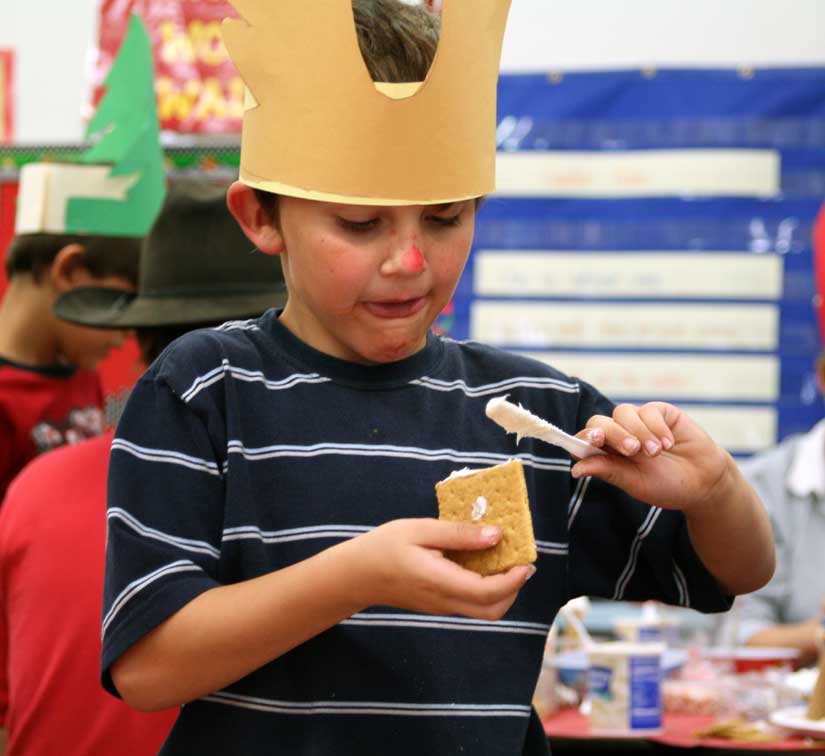 The smell of sugar and the sounds of Christmas carols filled the first grade area of the main hallway as moms and dads arrived at the classrooms of Mrs. Gilmore, Mrs. Rolin and Mrs. Trice.