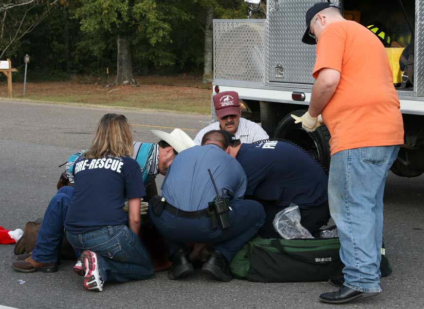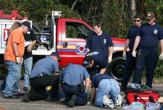 Pictured above: The Molino Fire Department treats the second injured. Picture below is the scene from the first injury.