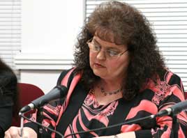 For town council seat one, Ann Brooks (pictured at top of page being sworn in by Town Clerk Dorothy Sims) defeated 30-year incumbent Marie McMurray 412 votes to 183 in October.