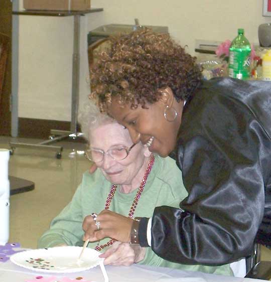 Sally Cary with Covenant Hospice of Northwest Florida joined the Century Care residents in an arts and crafts program.