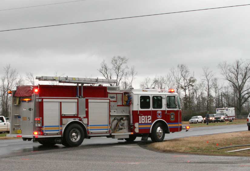 Pictured above: A Molino Volunteer Fire Department truck arriving at Highway 29 and Crest Lane.