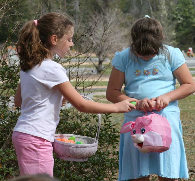 The Bratt First Baptist Church held a Community Easter Egg Hunt at the Oak Grove Park Saturday morning. Dozens of children listened to the story of Jesus’ death and resurrection before scrambling to find hundreds of eggs hidden across the park.