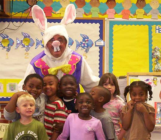 The Easter Bunny (music teacher, Mr. Morrrell) visited Pre-K. Ms.Stephens class this morning at Carver/Century K-8 School. The Easter Bunny was in Century a few days early celebrating the first day of Spring today.