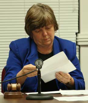 Pictured above: Council President Anne Brooks opens bids on surplus vehicles at Monday night’s Town of Century Council meeting.