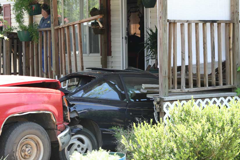 Pictured above: The red pickup truck crashed into this Saturn, pushing it under the the porch of a mobile home on North Century Boulevard late Wednesday morning. Pictured below: The Saturn under the porch after the pickup was towed from the scene. Pictured bottom: More photos from the accident. NorthEscambia.com exclusive photos, click to enlarge.