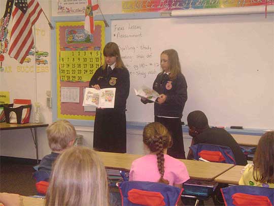 These students read “These Florida Farms” to the third and fourth graders. The FFA members also spoke with the fifth graders about their future attendance at Ernest Ward Middle School.