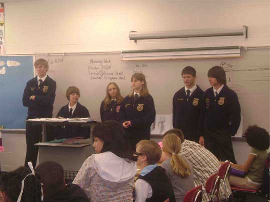 FFA students from Ernest Ward Middle School brought ag to the classroom at Bratt Elementary School Thursday morning.