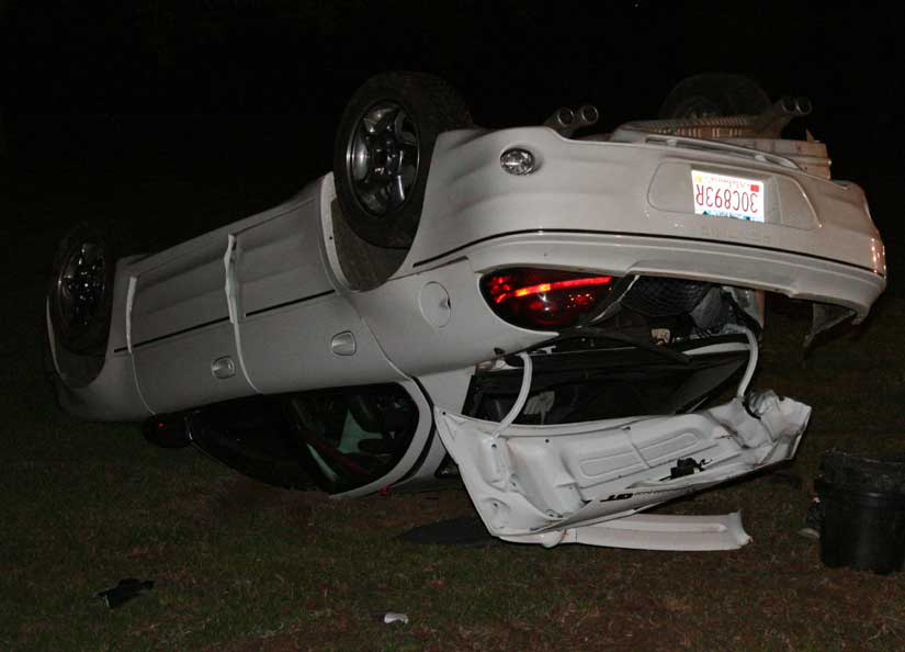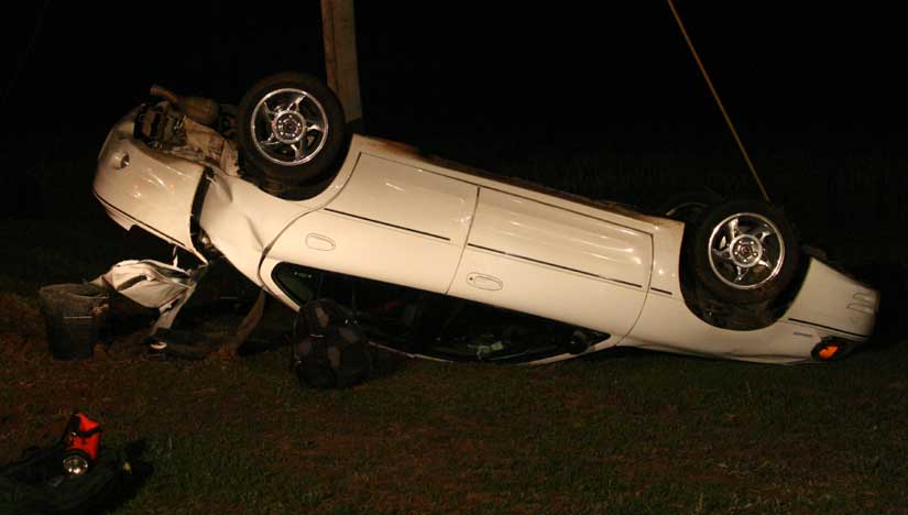 The driver of a northbound Pontiac Grand Am lost control in a curve just about a half mile north of Howell Road about 9:30 Sunday night. She skidded across Highway 97 before flipping the vehicle and striking a power pole on the opposite side of the highway. The Grand Am landed upside down, and power lines landed in the southbound lanes of Highway 97.