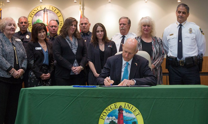 Thursday, Gov. Rick Scott signed “Ponce’s Law’ which creates harsher penalties for animal abusers. “Ponce’s Law” is named for a 9-month-old Labrador retriever puppy found beaten to death in Ponce Inlet last year. This legislation allows a judge to bar someone convicted of animal cruelty from owning a pet, and makes it more likely that an offender would to go prison. Photo for NorthEscambia.com, click to enlarge.