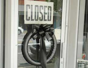 A black wreath hung on the door of the businesses in Atmore Friday afternoon.