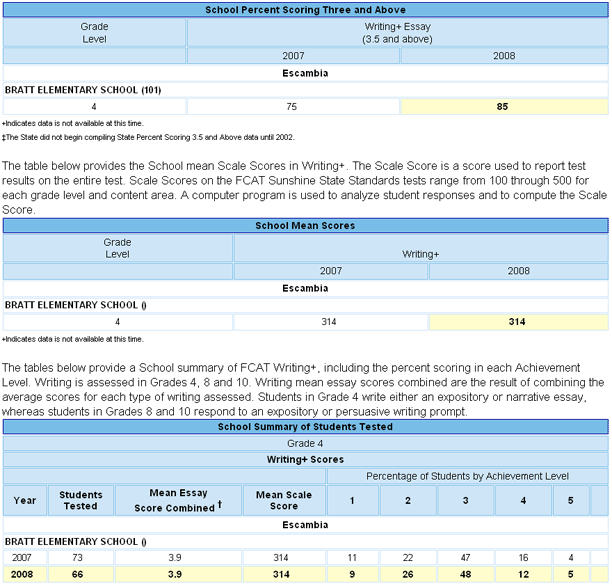 Bratt Elementary Boost FCAT Writing Gains, One Of The County’s Best