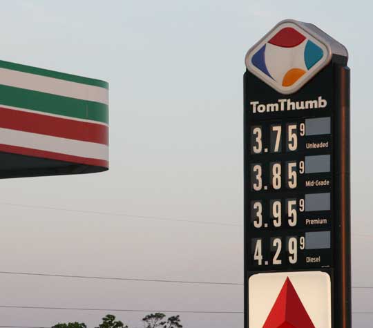 The Tom Thumb in Molino, traditionally one of the cheapest gas stations in North Escambia, was selling a gallon of regular unleaded for $3.75 late Monday afternoon. Monday night in Century, that same gallon of gas was at $3.79. Meanwhile, diesel in Molino climbed to a new high of $4.29 per gallon.