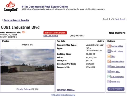 The real estate listings for the “immaculate office/warehouse building” were placed on February 5 of this year according to data in the PensacolaMLS, the official site of the Pensacola Association of Realtors. It is listed with NAI Halford Commercial Estate with agent Theresa Ritchie. It is also listed on commercial real estate website loopnet.com.