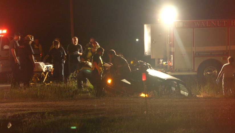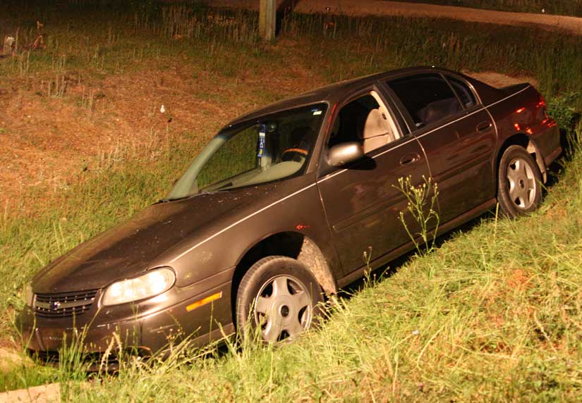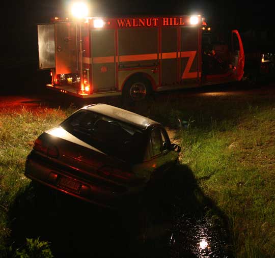 Pictured above: The Walnut Hill Volunteer Fire Department responded to a single vehicle wreck late Monday night in Davisville. Pictured below: Emergency personnel work to remove the driver of the vehicle. Pictured bottom of page: The car suffered very little apparent damage in the low speed crash. NorthEscambia.com exclusive photos, click to enlarge.