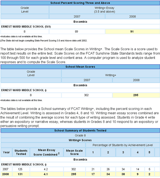 Ernest Ward Eighth Graders Hold Steady On FCAT Writing+