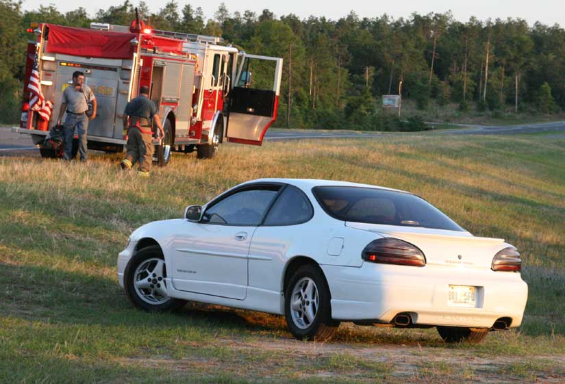 The vehicle had lightly struck a fence post at a low speed, causing only very minor damage to the Pontiac Gran Prix’s front bumper. The caller was not trapped.