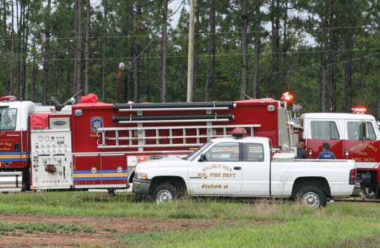 Pictured above: Vehicles similar to this white pickup are assigned to volunteer fire department chiefs and assistant chiefs to allow quick response to emergencies such as this fire Wednesday afternoon in Walnut Hill. NorthEscambia.com photo.
