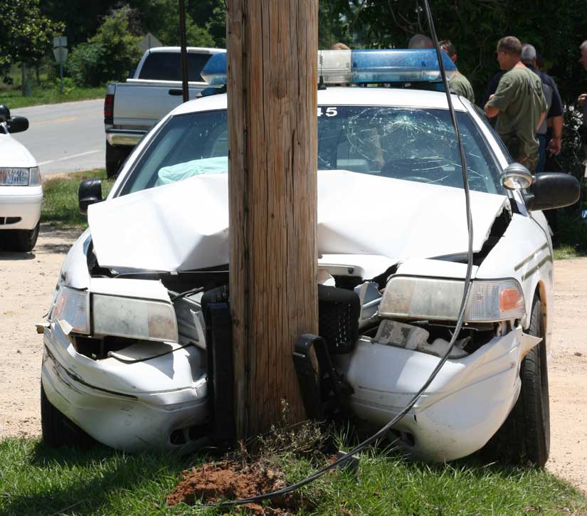 Escambia County Deputy David Ingram was injured when his cruiser hit a power pole in Bratt after he collided with a pickup truck driven by a local teen. He was transported by ambulance to Sacred Heart Hospital with non-life threatening injuries.