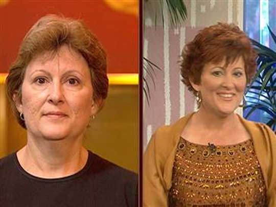 In the end, Cheryl ended up on national television with her new look. Her hair went from light ash brown to a reddish auburn color, and a complete makeup change. She was dressed in a Lafayette 148 silk dress and shoes from Nine West.