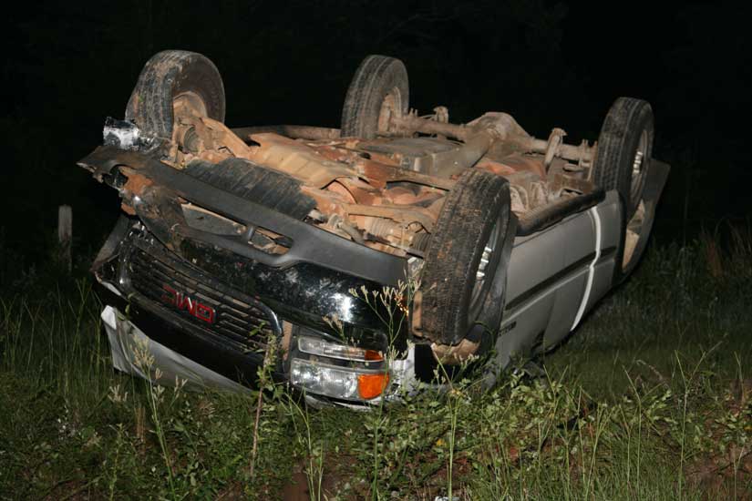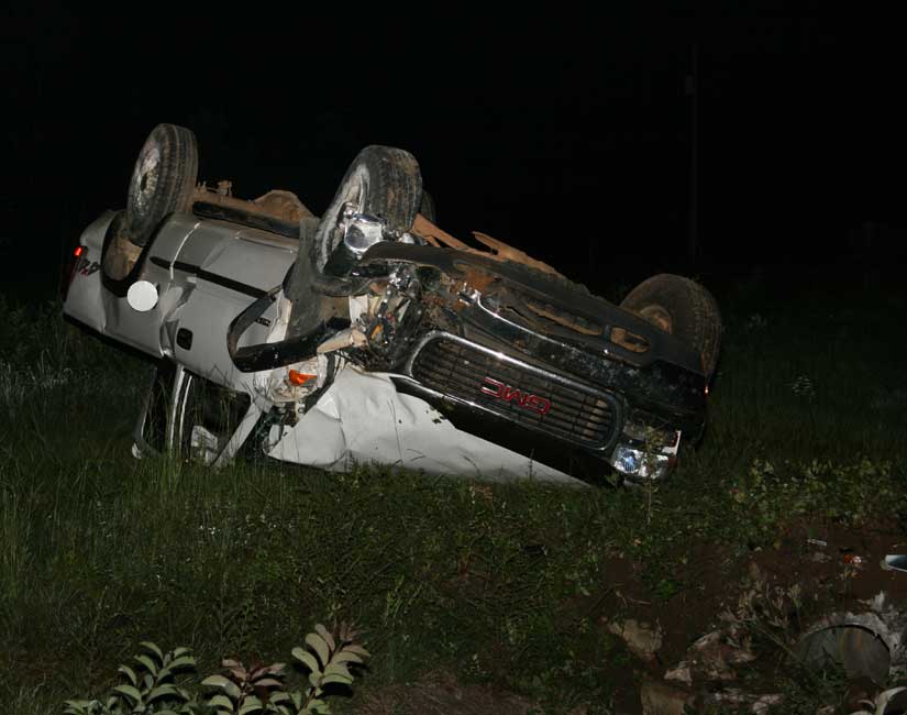 Their westbound pickup truck veered off the right side of the highway where Trentman overcorrected and ran off the other side of the road, where the truck overturned when it struck a culvert just past the bridge. All six exited the vehicle and walked about 200 feet west to the nearest residence.