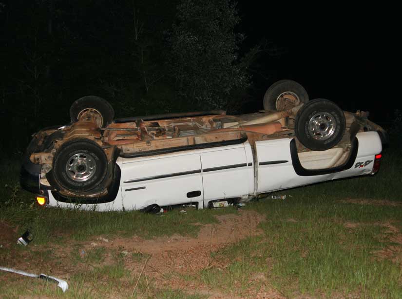 Pictured above and below: Six teens were in this pickup truck that overturned early Tuesday morning on Highway 4 near Canoe Creek. NorthEscambia.com exclusive photos, click to enlarge.