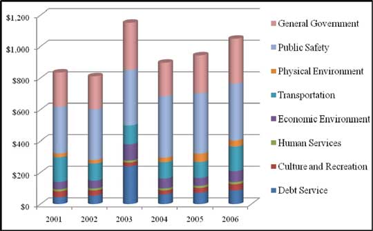 This analysis was based upon (1) Escambia County’s historical spending practices and (2) a comparison of three comparable counties and the 67-county average for the State of Florida.