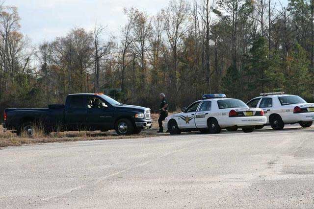 Then on the morning of January 9, federal officials raided the Helicopter Technologies building in Century, seizing records. Van Nevel was kept off the property during the raid by sheriff’s deputies. In the photo to the left, Van Nevel is being stopped from entering the property by sheriff deputies. (NorthEscambia.com exclusive file photo, click to enlarge.)