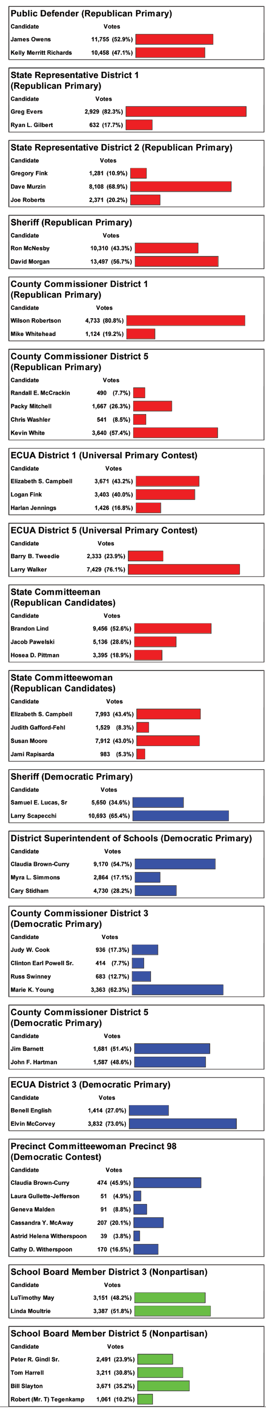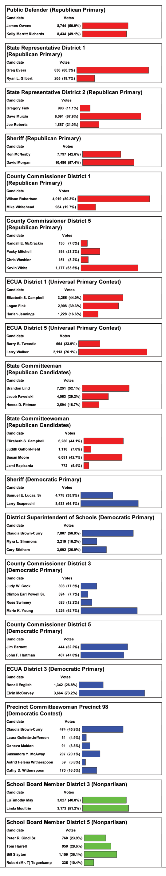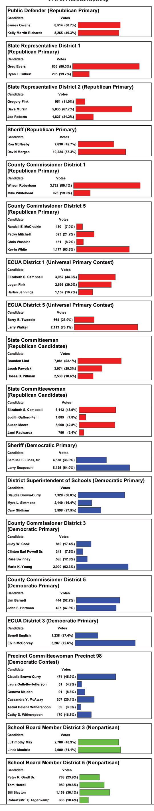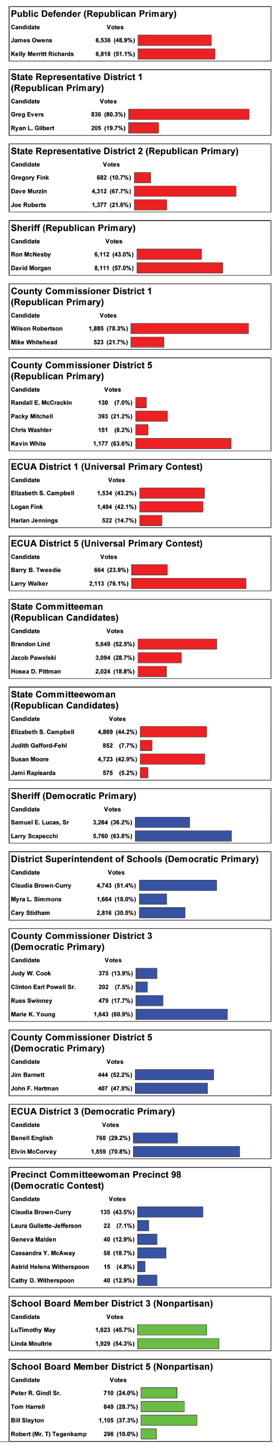 Here are the complete, unofficial elections results from Tuesday’s primaries in Escambia County.