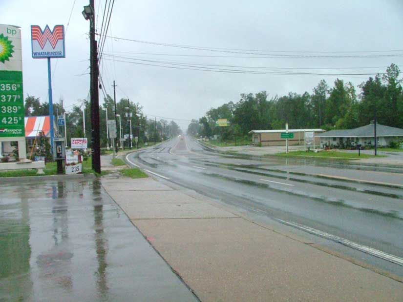 Pictured above: Highway 29 in Century appeared almost abandoned Saturday afternoon as most people stayed home waiting for the storm to arrive.