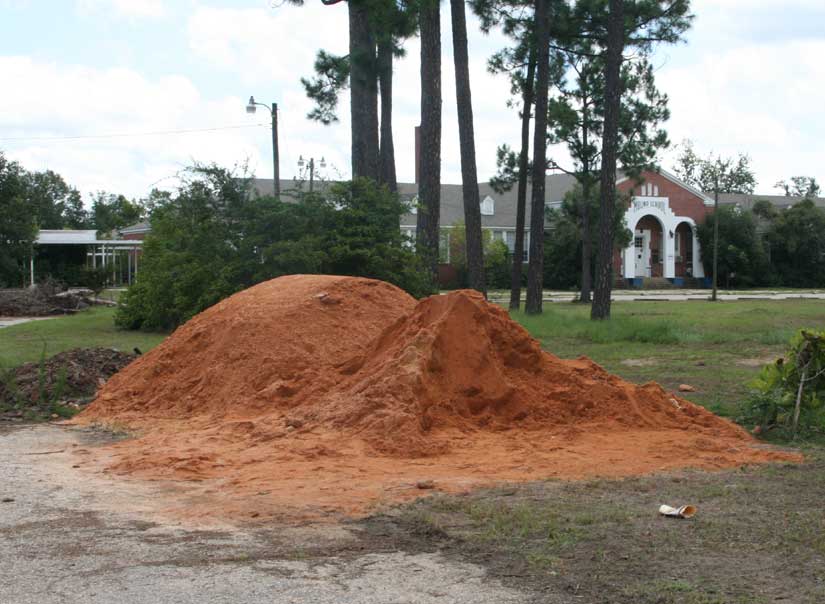 Pictured above: Dirt remained at the old Molino Elementary School Sunday, one of the sandbag distribution sites in Escambia County on Saturday.