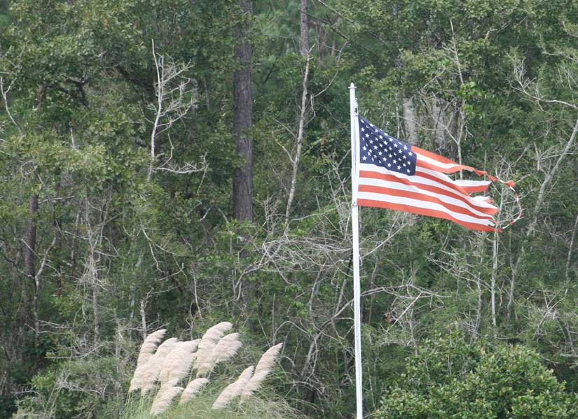 Pictured above: This flag at a home on Highway 97 in Dogwood Park did not fare well in the wind.