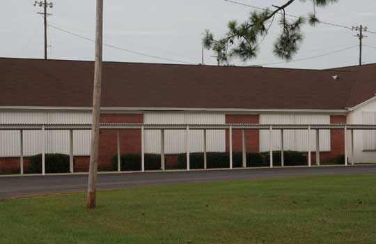 Pictured above: Part of the school district’s preparation for the arrival of Tropical Storm Fay was in the installation of storm shutters at Ernest Ward Middle School in Walnut Hill. NorthEscambia.com photo.