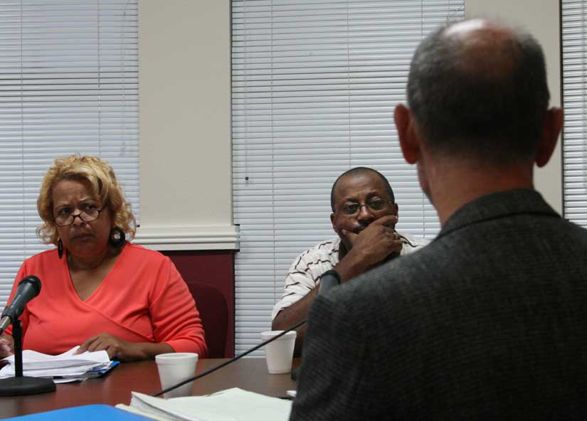 Pictured above: Century council members Sharon Scott (left) and Henry Hawkins listen to town accountant Robert Hudson Tuesday night. NorthEscambia.com photo, click to enlarge.