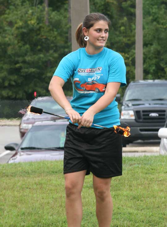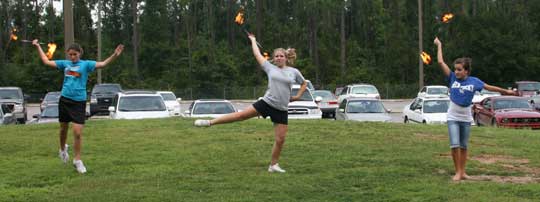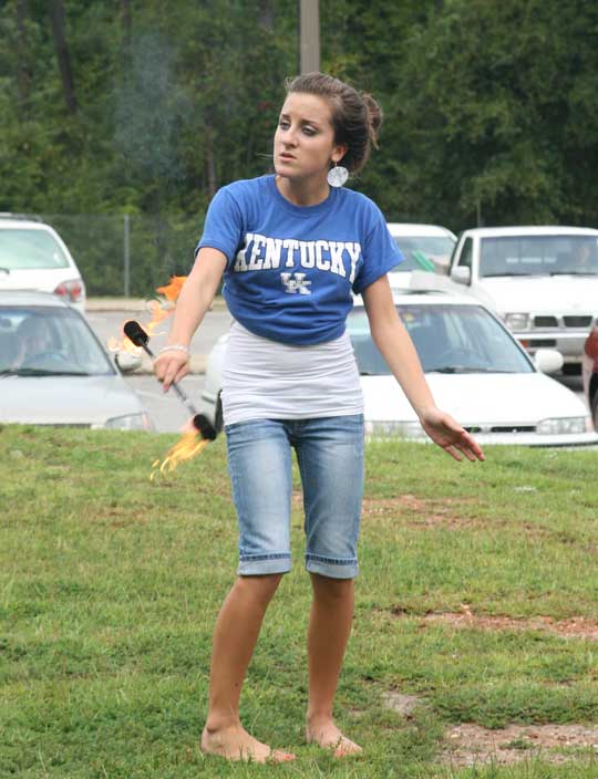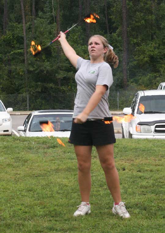 Pictured above: (L-R) Kolbi Cobb, Haley Simpson and Caitlyn Brown practice their flame twirling earlier this week at Northview High School. Pictured bottom (top to bottom, scroll down to see all three photos) Northview majorettes Kolbi Cobb, Haley Simpson and Caitlyn Brown. NorthEscambia.com photos.