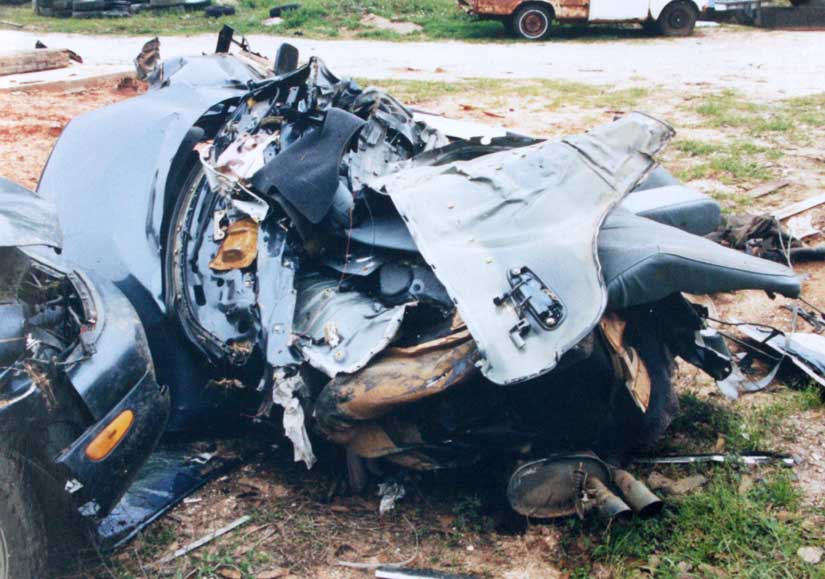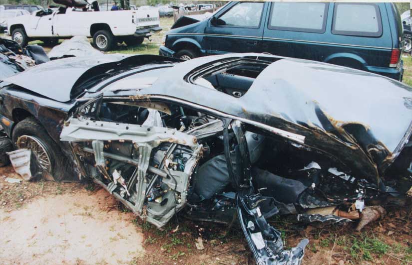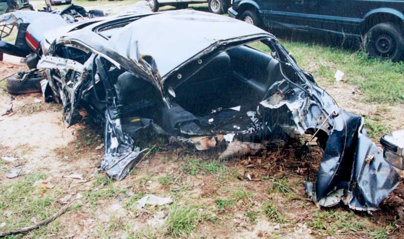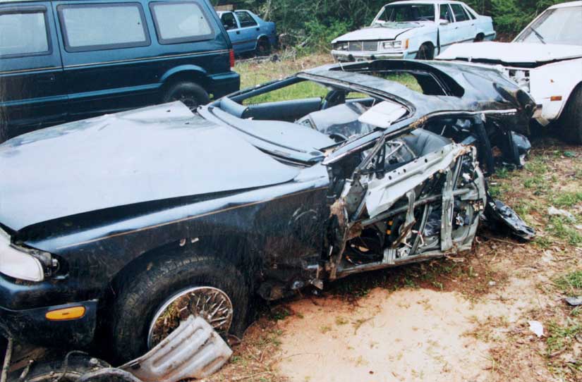 Pictured top: The front half of the car Valerie Baker was driving when she nearly lost her life in March, 2001. Pictured below: The back half of the car. Pictured bottom: More photos of the car in a junkyard. Courtesy photos.