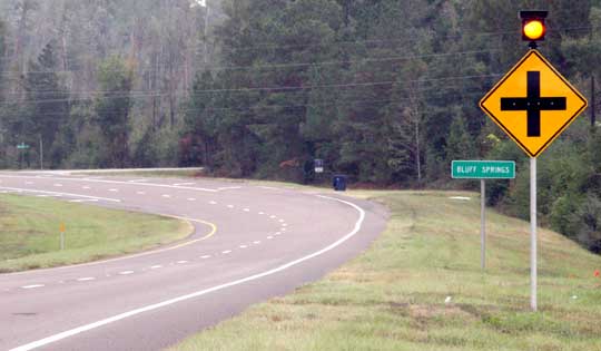 Flashing yellow lights have been installed on “intersection ahead” signs both north and southbound as Highway 29 approaches the intersection. If all goes as planned, new speed limit signs will be posted Friday, lowering the Highway 29 speed limit near the intersection from 65 to 55 mph, Speights said. Additionally, he said, the state had recommended that the county install solar powered flashing lights and signs on both Byrneville Road and Bluff Springs Road as they approach Highway 29.