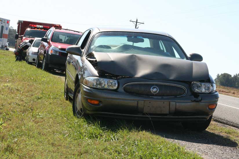 Pictured above: There were no serious injuries to any of the about half dozen people involved in a two vehicle accident in Davisville Sunday morning. The driver this Buick LaSabre apparently rear-ended a pickup truck. Photo by Delaney R. for NorthEscambia.com, click to enlarge.