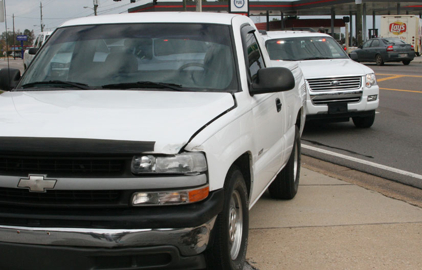 Pictured above: Emergency officials work to free the drive of the vehicle. Pictured below: The Honda CRV suffered major damage. Pictured below: The pickup involved in the crash sustained minor damage. NorthEscambia.com photos, click to enlarge.