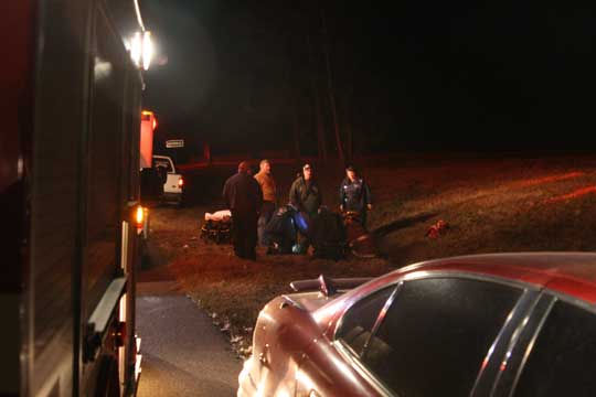 Pictured above: Emergency workers treat a person found lying in a ditch by Highway 97 about 1:50 Sunday morning. NorthEscambia.com photo, click to enlarge.