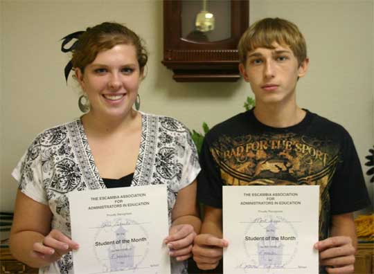 Pictured above: Ernest Ward Middle Students of the Month (L-R) Jenny Spears, Kaitlyn Gunn, (back) Logan Lee, Brannen Bateman. Pictured below: Northview Students of the Month Lanie Eubanks and Mark Shipps. Submitted photos for NorthEscambia.com.