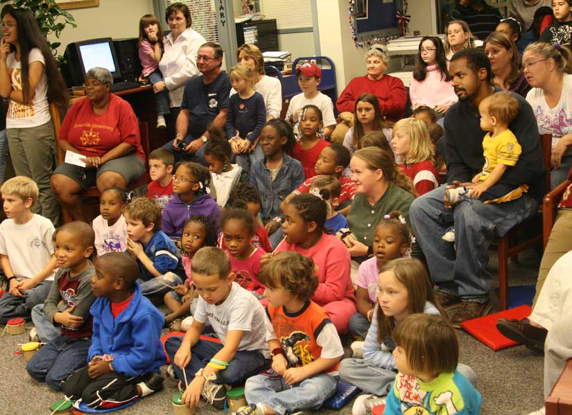 Pictured above: A Poarch Creek Indian dancer performs at the Century Branch Library Thursday afternoon. Pictured below: A packed house for the performance. NorthEscambia.com photos, click to enlarge.