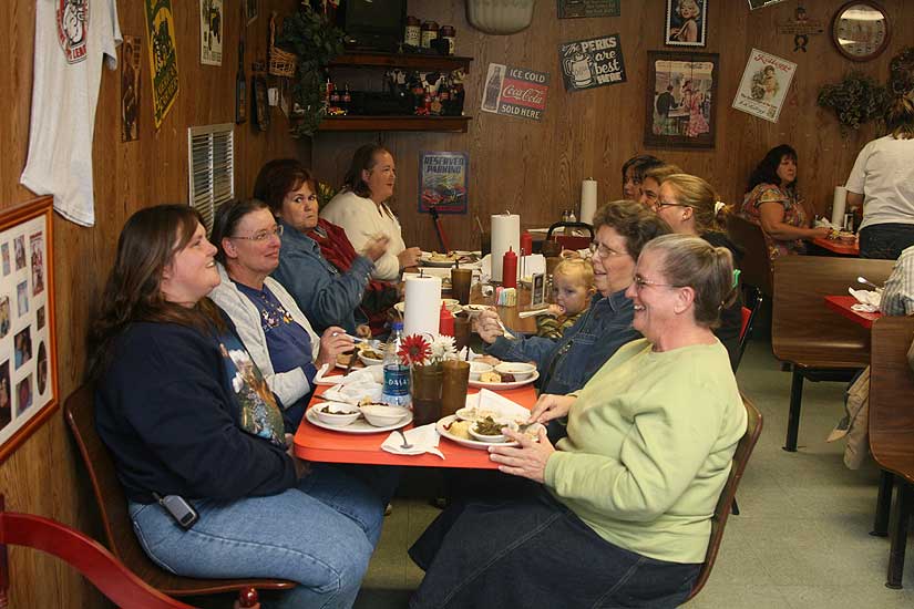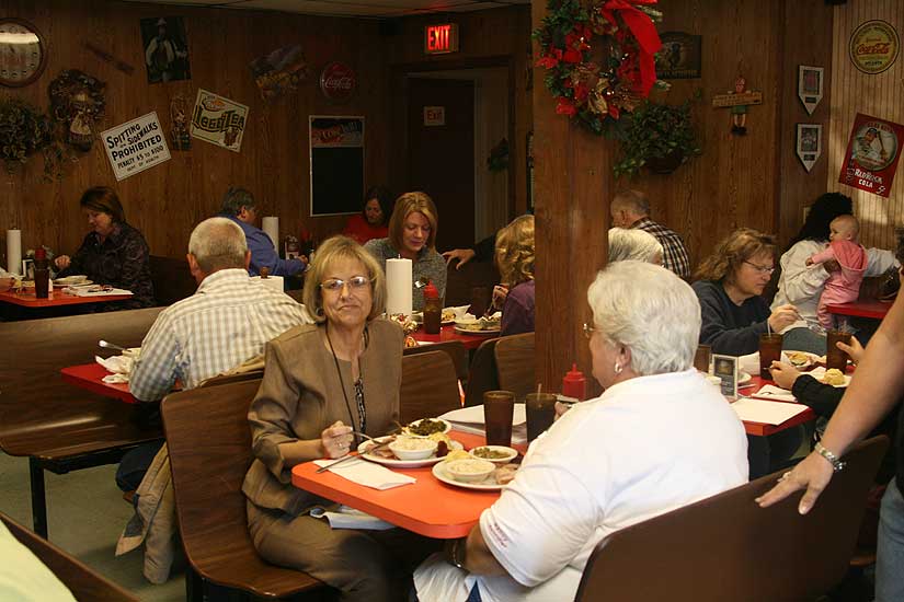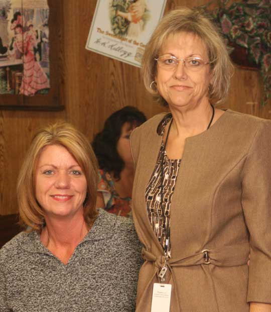 Pictured top: Tina Vickery’s accident on Highway 97 on February 26, 2008. Pictured above: Tina Vickery on Wednesday with bus driver Marie McPhillips. Pictured below: North Escambia bus drivers at a Thanksgiving lunch on Wednesday. NorthEscambia.com photos, click to enlarge.
