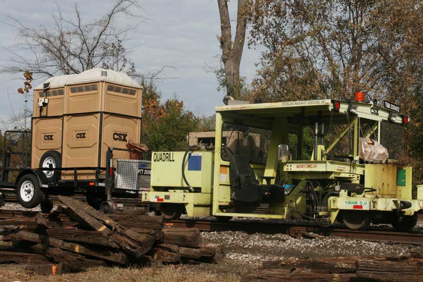 Pictured above: These porta-potties on rails were spotted recently in Century. CSX Transportation is in the midst of a project to replace crossings from Century to Molino, and these portable toilets on a small railroad car are used for the workers. Here, the porta-potties were on the tracks alongside Zion Street near the Cottage Street crossing in Century. The crossing in the northernmost crossing in the state of Florida. NorthEscambia.com photo, click to enlarge.